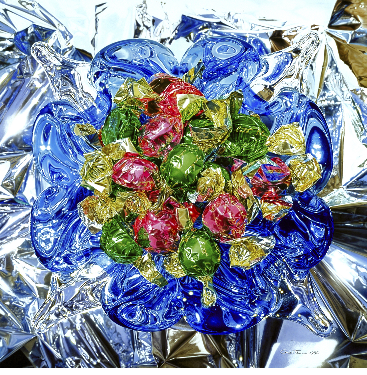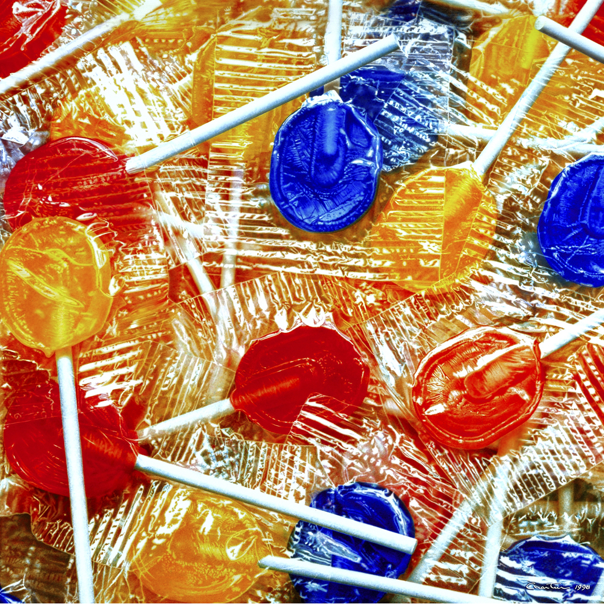 1998 “LOLLIPOPS” 58”X58” 147cmX147cm Acrylic on canvas. Private Collection