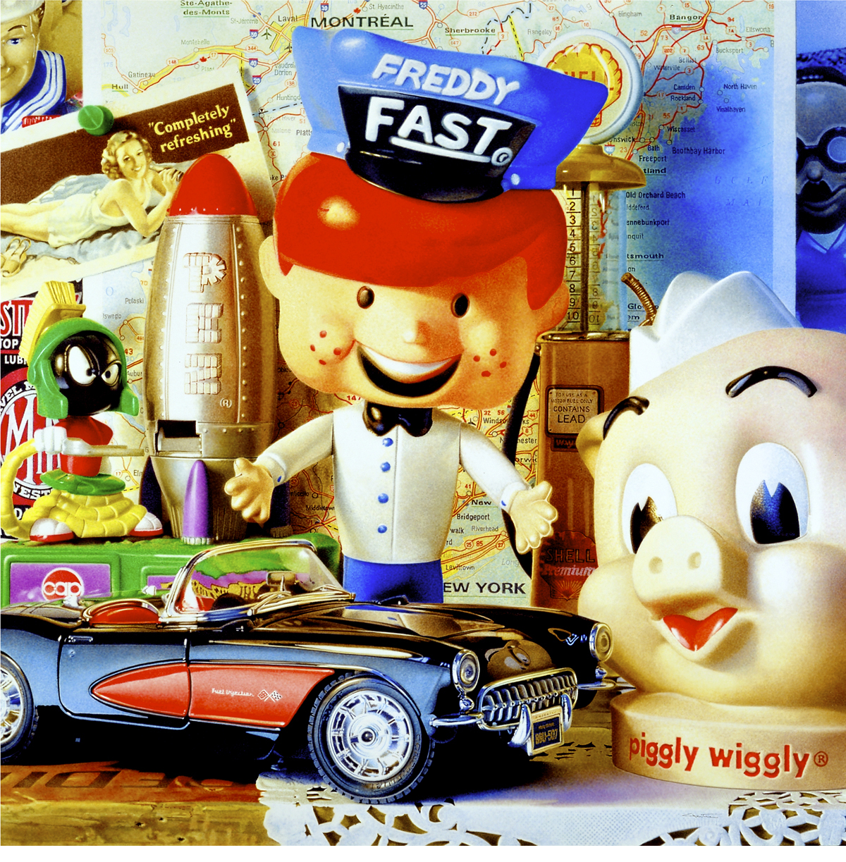 1999 “SELF PORTRAIT 1950” 58”X58” 147cmX147cm Acrylic on canvas. Private Collection 1999 “LETS GO FOR A RIDE” 58”X58” 147cmX147cm Acrylic on canvas
