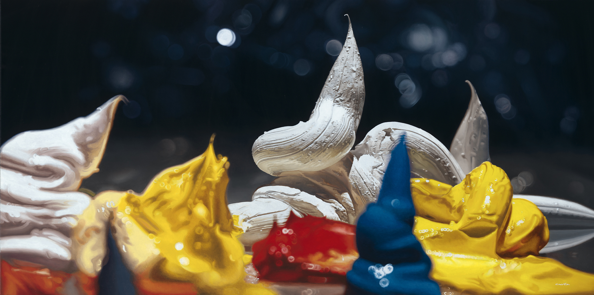 2008 “ART FOR ART’S SAKE” 36”X36” 91cmX92cm Oil on canvas 2008 “FULL MOON IN THE STUDIO” 36”X60” 91cmX152cm Oil on canvas 2009 “PRIMARY COLORS” 36”X60” 91cmX152cm Oil on canvas. Private Collection 2009“TRUE THE ARTIST EYES” 36”X60” 91cmX152cm Oil on canvas. 2009 “HOME SEET HOME” 36”X72” 91cmX182cm Oil on canvas. Private Collection